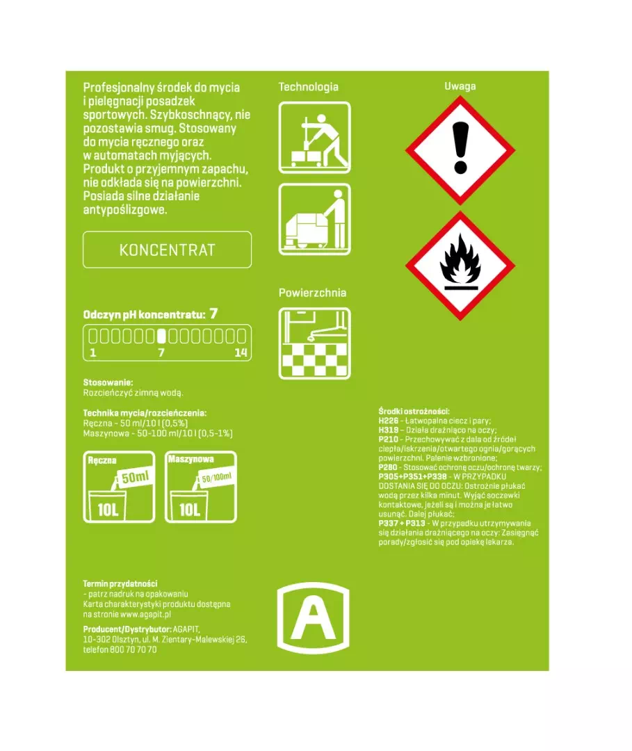Płyn do pielęgnacji podłóg sportowych. szybkoschnący, nie pozostawia smug. posiada silne działanie antypoślizgowe