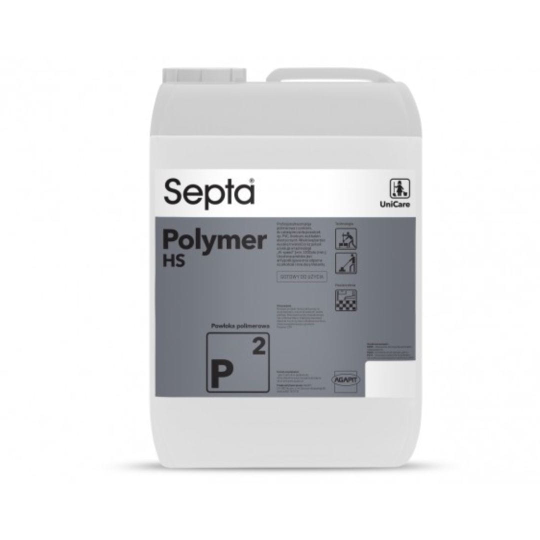 Septa Polymer HS P2 to profesjonalna emulsja polimerowa z cynkiem, do zabezpieczania posadzek np. PVC, linoleum, wykładzin elastycznych. Właściwą, bardzo wysoką trwałość oraz połysk uzyskuje w technologii „Hi-speed” (min. 1200 obr./min.). Uzyskana powłoka jest antypoślizgowa oraz odporna na alkohole i inne dezynfekanty.