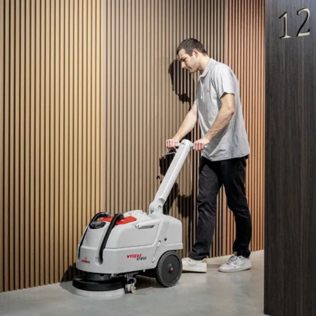 Dzięki kompaktowym wymiarom i wysokiej zwrotności Vispa EVO poradzi sobie wszędzie tam, gdzie tradycyjny sprzęt do sprzątania jest niewystarczający – także w trudno dostępnych narożnikach czy wąskich przejściach.