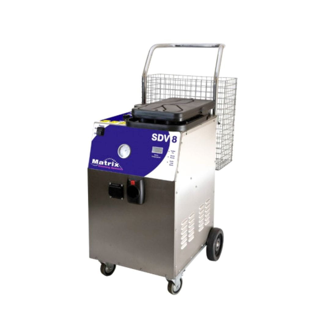 Matrix SDV8 to urządzenie do czyszczenia parą wykorzystujące do pracy parę o ciśnieniu 8 bar. Wyposażone w system odkurzania i dozowania detergentu do strumienia pary. Konstrukcja maszyny do czyszczenia parą jest wykonana ze stali nierdzewnej z opcją uzupełniania wody w bojlerze podczas pracy oraz ze zintegrowanym systemem zasysania. Para o wysokiej temperaturze wraz z detergentem wnika głęboko w powierzchnie zwiększając właściwości sanityzacyjne i skuteczność czyszczenia. Zintegrowany odkurzacz sprawia, że czyszczone powierzchnie pozostają czyste i suche zaraz po zakończeniu pracy. Skuteczny i wydajny przy usuwaniu gum do żucia.