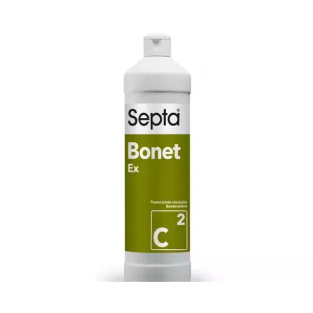Septa Bonet Ex C2 to profesjonalny środek czyszczący do czyszczenia wykładzin technologią bonetowania. Środek wiąże brud w kapsułki, które łatwo usunąć w odkurzaniu na sucho. Metoda jest wyjątkowo szybka, skuteczna, bezpieczna i ekonomiczna.