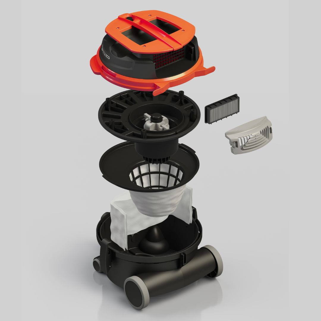 Produkt wykonany z odzyskanego plastiku - Plastikowe elementy odkurzacza są wykonane z materiałów powstałych w procesie recyklingu i nadają się w całości do ponownego przetworzenia.