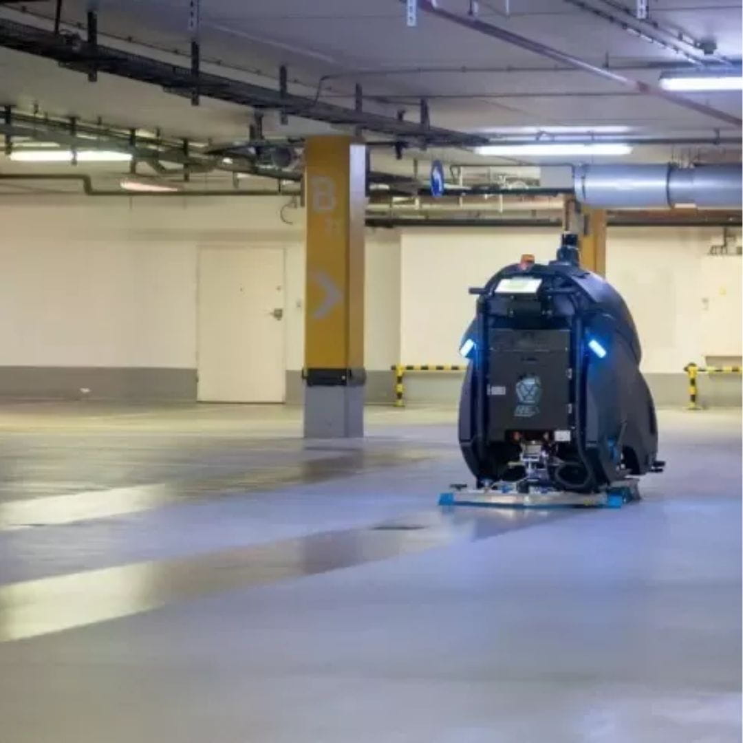 PRZEMYSŁOWY ROBOT CZYSZCZĄCY LIONSBOT REX to największa autonomiczna maszyna czyszcząca z naszej oferty. Dwie szczotki talerzowe o łącznej szerokości roboczej 81 cm z naciskiem do 80 kg czynią go jednym z najbardziej efektywnych robotów czyszczących na rynku. Wydajność na poziomie 1700-2500 metrów kwadratowych na godzinę oraz możliwość ciągłej pracy przez 5-6 godzin sprawia, że maszyna świetnie sprawdzi się w sektorach takich jak: centra logistyczne, fabryki, duże centra handlowe, parkingi podziemne czy też lotniska. REX w opcji może zostać wyposażony w stację dokującą, która umożliwi całkowicie autonomiczną pracę robota.