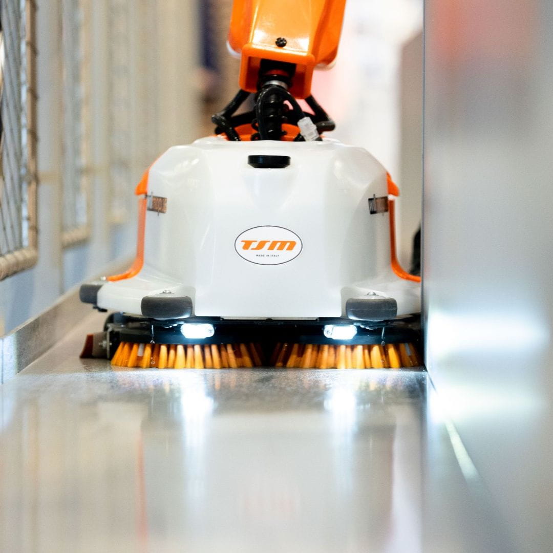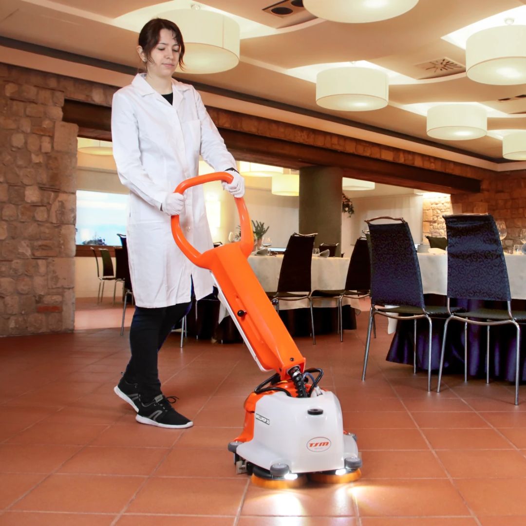 TSM Willmop 35 to lekka, wyjątkowo zwrotna maszyna czyszcząca, która zastępuje tradycyjny mop i znacząco skraca czas sprzątania. Dzięki ruchowi 360°, mocnym szczotkom i akumulatorowi do 70 min pracy radzi sobie nawet w wąskich przestrzeniach, zapewniając czyste i suche podłogi już po jednym przejeździe.