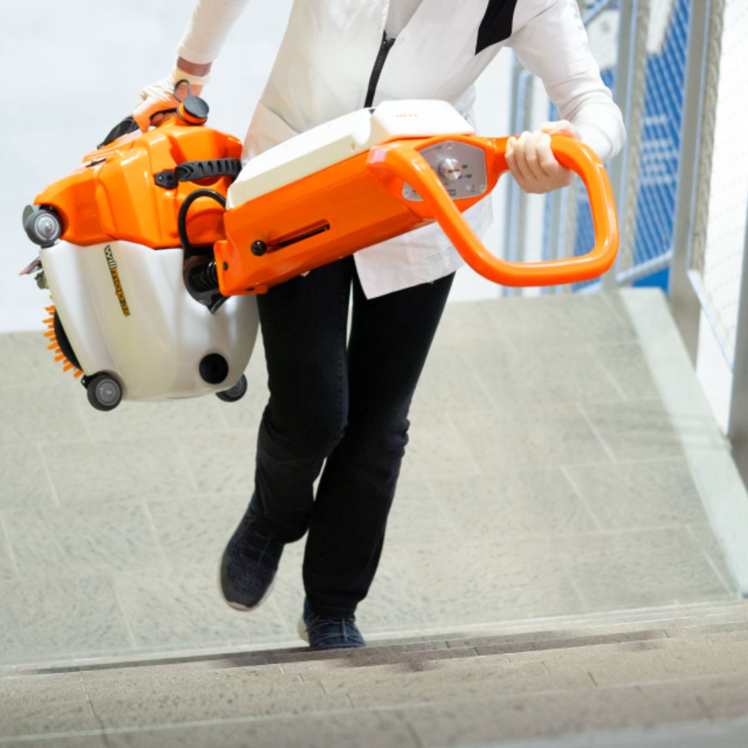 Niska waga i specjalny uchwyt transportowy umożliwiają szybkie przenoszenie maszyny nawet pomiędzy piętrami.