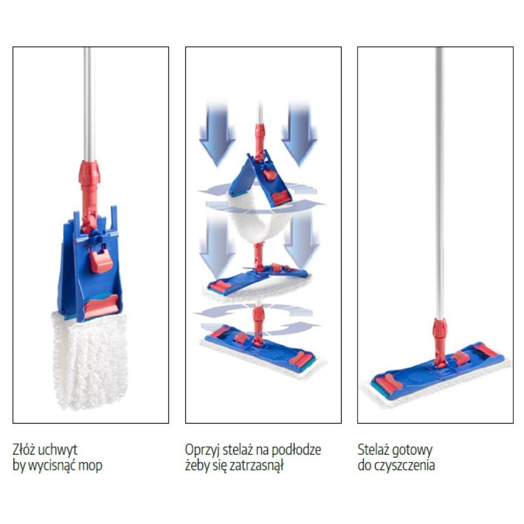 Konstrukcja mopa została opracowana tak, aby maksymalnie usprawnić codzienne sprzątanie: pętelkowa przędza wewnętrzna zwiększa trwałość i zapobiega strzępieniu. Wkład wyposażono w klapy z dwoma otworami, które stabilnie mocują go na stelażu i ułatwiają obsługę bez zdejmowania go podczas wyciskania.