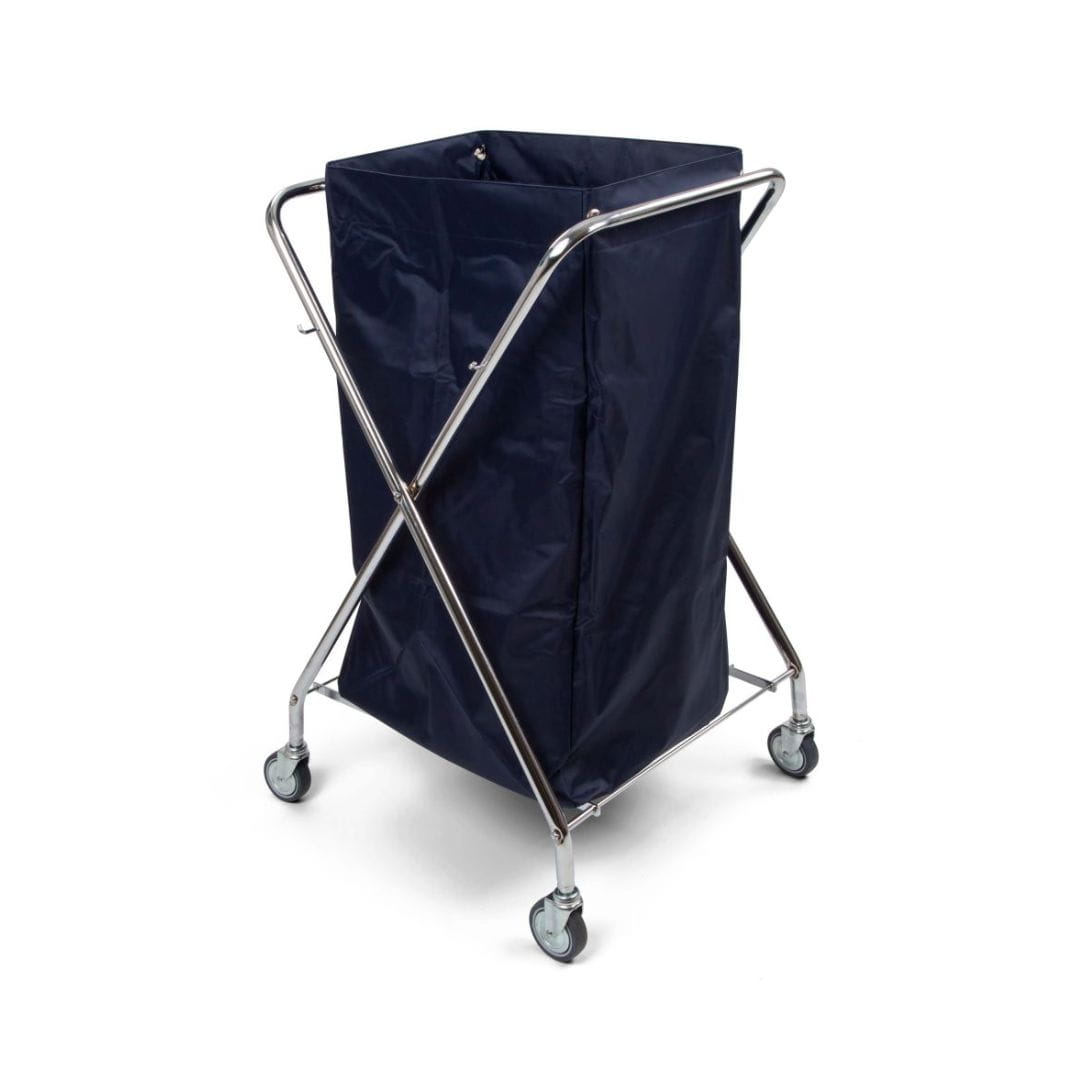 Pojemny wózek do brudnej bielizny 180 L ze składaną ramą X i wytrzymałym workiem nylonowym. Idealny do hoteli, szpitali i ośrodków opieki.