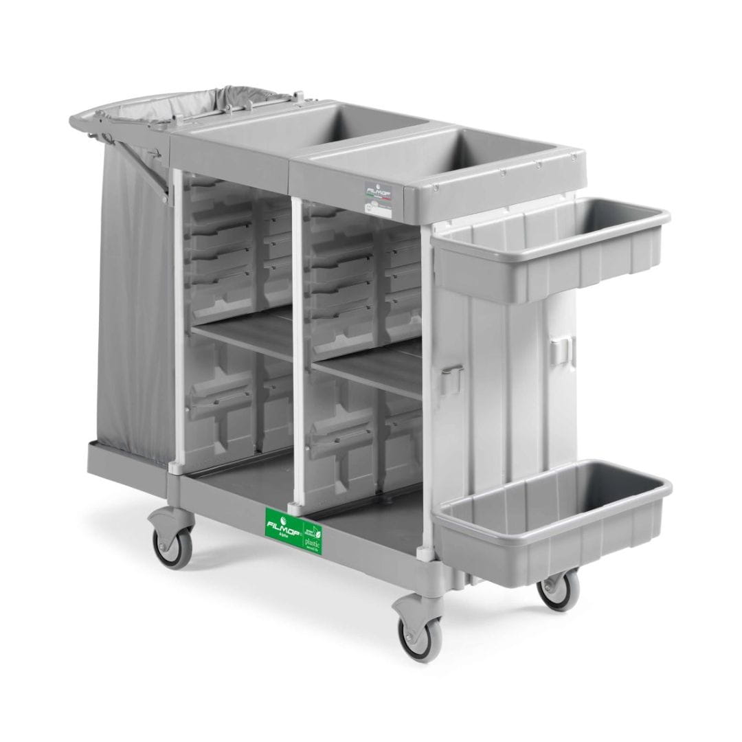 Wózek Filmop 5304-06 łączy w sobie ergonomię, higienę i funkcjonalność, co czyni go idealnym rozwiązaniem do hoteli, szpitali i placówek opiekuńczych.